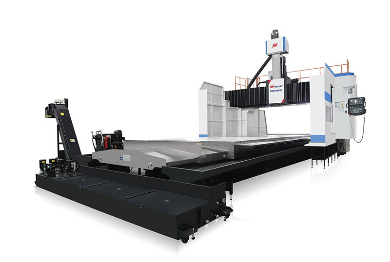 PM30120SC型龍門加工中心主要適用于航空、航天、汽車、能源、信息、模具等行業(yè)的零件加工。以加工黑色和有色金屬大型復(fù)雜零件為對象,具有高速、高精度、高柔性、環(huán)保等特點(diǎn)。